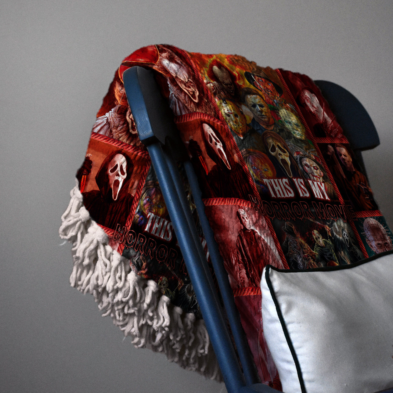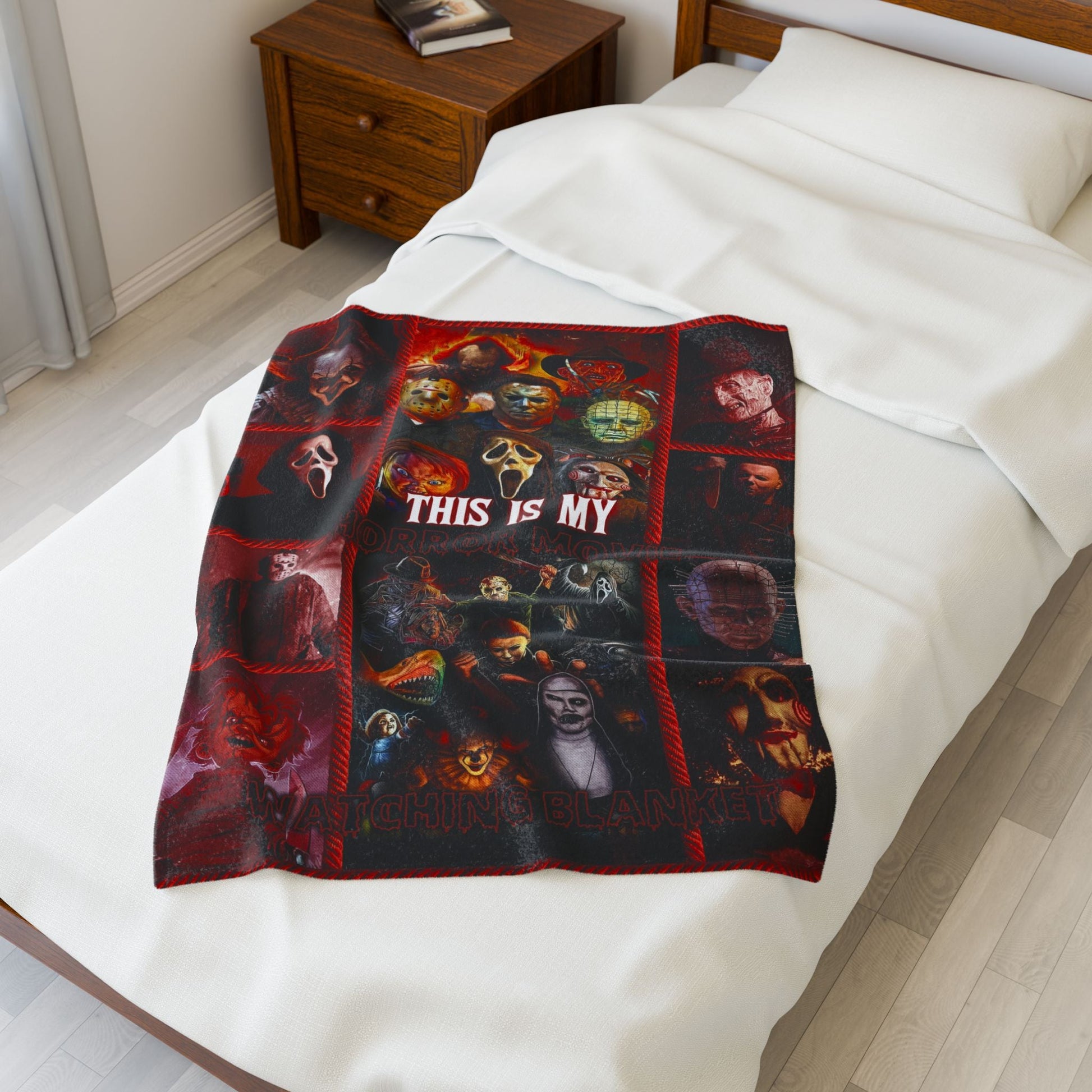 šĀ If you know someone who loves horror movies, the bold red āThis Is My Horror Movie Watching Blanketā is the perfect gift. Crafted from luxuriously soft fleece sherpa, it wraps you in warmth through every scary scene, spooky marathon, or chilly Halloween night.Ā Whether itās for a friend, family member, or that special someone who lives for jump scares, this blanket makes sure they stayĀ snug, stylish, and scream-ready while enjoying their favorite horror flicks.Ā š